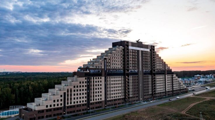 Цитадель российского дроностроения в материалах СМИ Татарстана преподносилась в 2023 году как египетская пирамида, хотя здание скорее напоминает гигантскую лесенку с детской площадки или фигурку из Lego. В штаб-квартире 18 этажей, по сведениям местных СМИ, стоимость строительства — 7 миллиардов рублей, в здании смогут жить и работать около двух тысяч человек. При этом многоуровневый характер постройки имеет и концептуальную основу. Чем выше по внутреннему грейду будет взбираться учащийся, тем выше он сможет поселиться. Этаж и количество соседей зависит от должности. Пока учащиеся стажеры, они живут на первых этажах, а затем, по мере карьерного роста, будут переезжать все выше, а соседей в квартире будет становиться все меньше. Наверху этой пирамиды успеха по-татарски ждет спа-центр с джакузи.